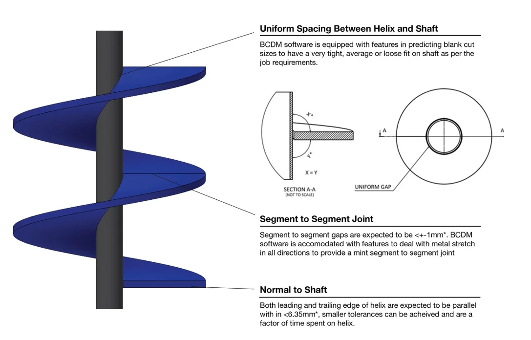 - Design Options: Cut & Fold, Tapered Diameters, Progressive Pitch, Canted, Cupped Flights.